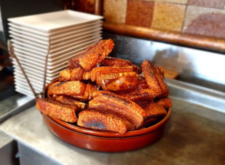 Patatas revolconas con torreznos (fried potatoes with bacon and bacon rashers)7.00 (m) / 10.00Mashed potatoes with pork scratchings